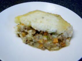 Shepherd’s pie is a meat pie with a potato crust. It is traditionally made with lamb or mutton and not beef. If beef or any other left-over meat is used instead of sheep meat, then it is referred to as Cottage Pie.  …Thank you Wikipedia and Alton for the helping us know the difference.