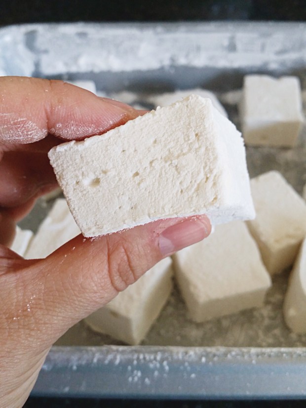 I made them twice (plain marshmallows and pumpkin spiced) using light corn syrup and the other time using agave syrup. Yes, I know both of those are “bad”, however, this is a treat and not something that is eaten on a daily basis.