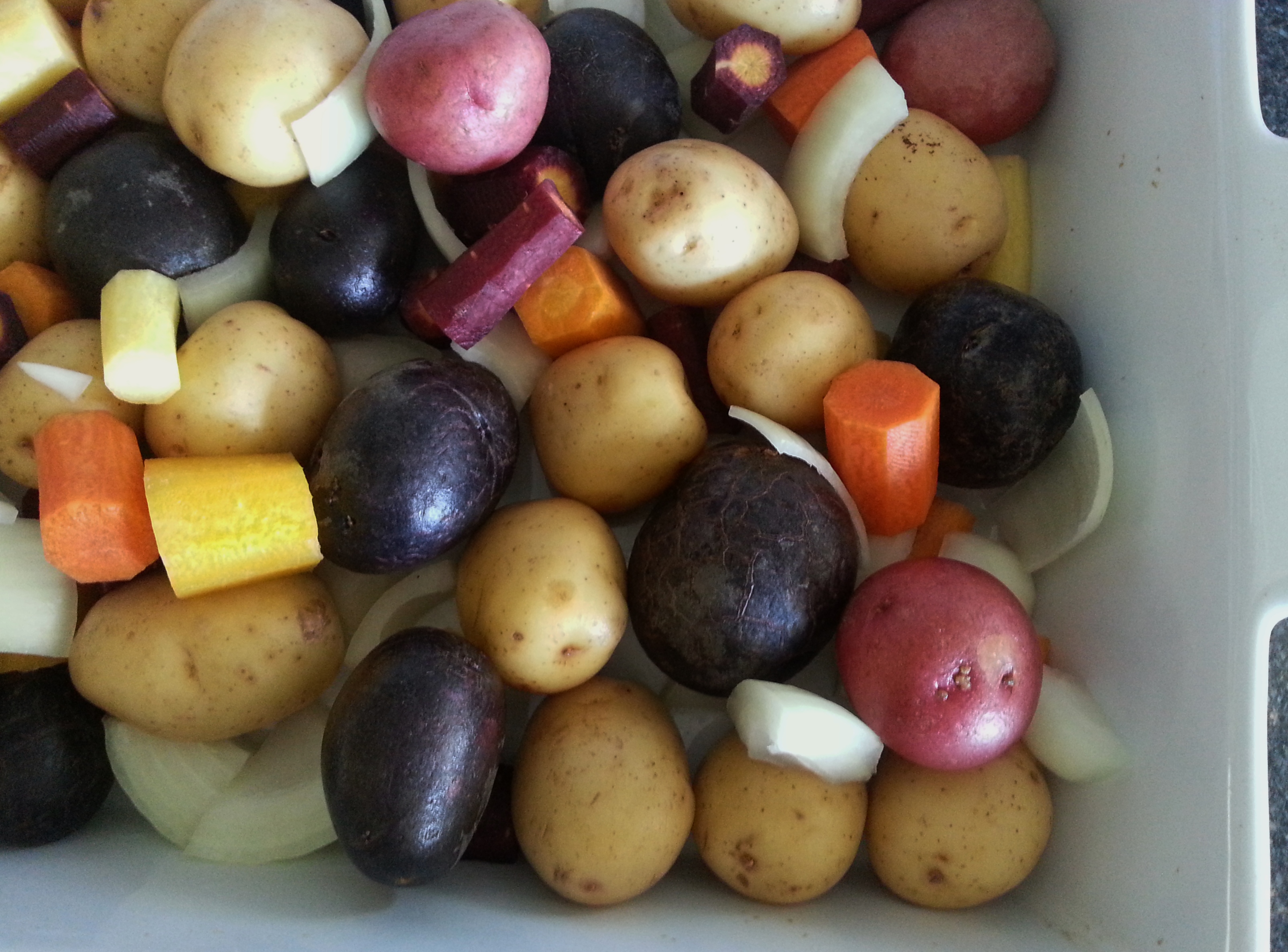 1 3lb bag of petite colorful potatoes (red, white and purple)