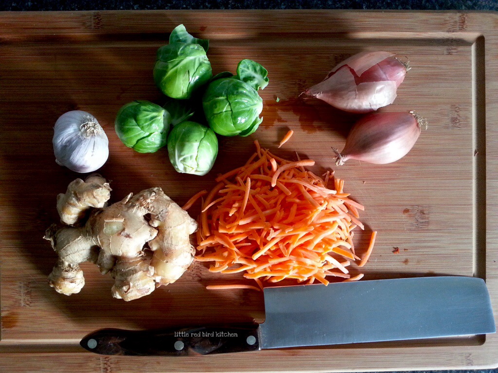 1. Shred and/or mince the veggies, garlic and ginger.