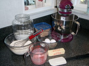 - In a medium bowl, whisk together flour, baking powder, and salt; set aside. In a small bowl, mix together milk, vanilla, and strawberry puree; set aside.